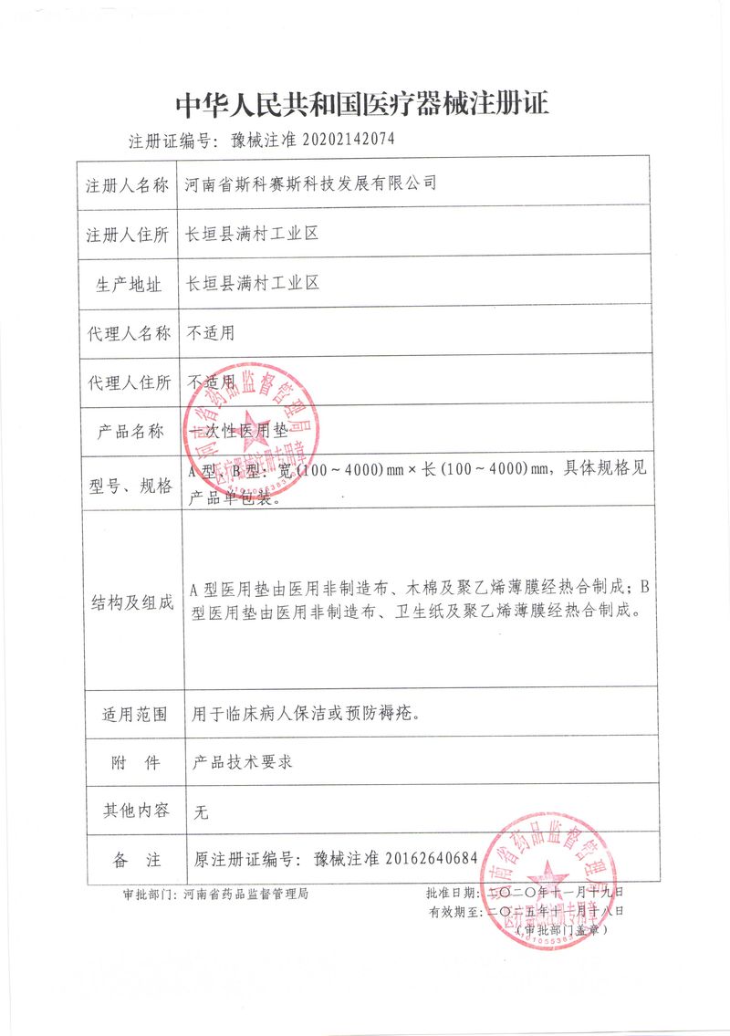 河南省斯科賽斯科技發(fā)展有限公司創(chuàng)建于 2011 年,位于“中國(guó)醫(yī)療耗材之都”- 河南省長(zhǎng)垣縣,西臨 308 省道,南靠新菏鐵路,北依長(zhǎng)濟(jì)高速,交通便捷,經(jīng)濟(jì)發(fā)達(dá),環(huán)境優(yōu)美。斯科賽斯積極進(jìn)入醫(yī)療健康和服務(wù)領(lǐng)域,秉承為用戶創(chuàng)造價(jià)值的理念,專注于醫(yī)用耗材解決方案的研發(fā)和運(yùn)營(yíng),并為用戶提供完善的產(chǎn)品解決方案;  斯科賽斯主要生產(chǎn)醫(yī)用麻醉系列、醫(yī)用高分子系列、醫(yī)用敷料包系列、醫(yī)用無紡布系列、醫(yī)用防護(hù)系列、醫(yī)用脫脂棉系列、生物材料制品類等七大類、100 多個(gè)品種、400 多個(gè)規(guī)格的產(chǎn)品。公司占地面積約 30000 平方米,建筑面積20000 平方米,擁有 10 萬級(jí)的凈化車間總面積 10000 平方米。擁有國(guó)際先進(jìn)水平的生產(chǎn)設(shè)備和檢測(cè)儀器,技術(shù)裝備精良,檢測(cè)手段完善,為醫(yī)療行業(yè)的不斷發(fā)展進(jìn)步提供保障。公司順利通過 ISO9001、ISO13485 質(zhì)量管理體系認(rèn)證。  斯科賽斯堅(jiān)持研發(fā)高科技新產(chǎn)品,力爭(zhēng)在醫(yī)療器械關(guān)鍵領(lǐng)域取得技術(shù)和研發(fā)的重大突破;立足國(guó)內(nèi)和國(guó)際兩個(gè)市場(chǎng),逐步實(shí)現(xiàn)管理理念、經(jīng)營(yíng)機(jī)制、人力資源、技術(shù)、產(chǎn)品、市場(chǎng)等全方位對(duì)接,提高企業(yè)的核心競(jìng)爭(zhēng)力;過去的歲月里,斯科賽斯砥礪前行,誠(chéng)信務(wù)實(shí),銳意進(jìn)取,不斷創(chuàng)新,用自己的睿智和辛勞,以富有責(zé)任感的使命,在探索中追求,在追求中超越,致力于成為值得信賴的醫(yī)療用品生產(chǎn)企業(yè)!在未來的日子里,斯科賽斯將一如既往豪情滿懷,信心百倍,攜手并肩,執(zhí)著追求,向更高的的目標(biāo)前進(jìn),鑄造新的輝煌!